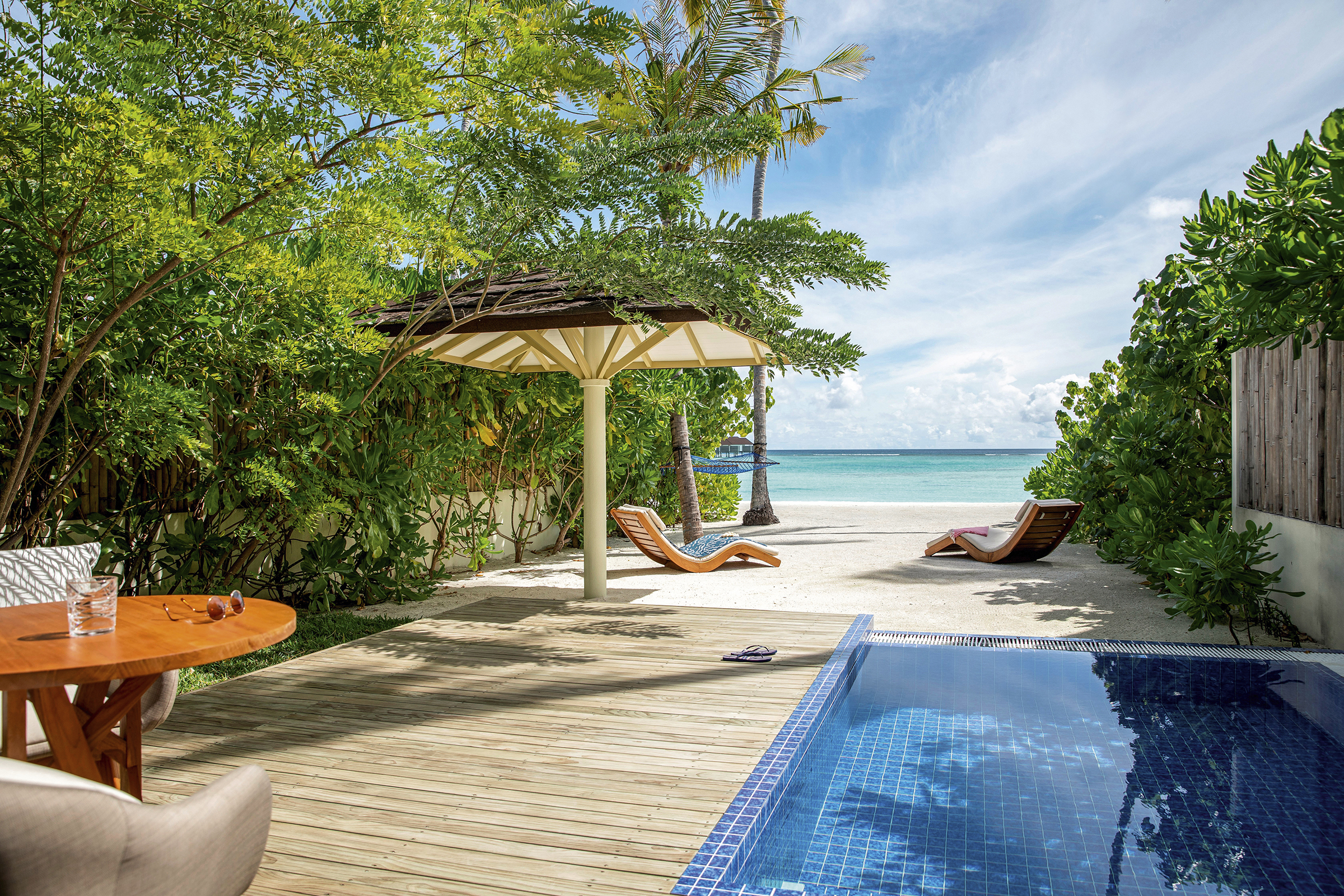 This villa was designed with couples in mind. There’s something about the private pool, the incredible location, and the breathtaking views that is oh-so-romantic. The design is contemporary with beach bungalow vibes. The pool is beach-side meaning you can spend your days alternating between pool and sea, sea and pool.