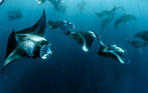 From December until May, graceful Manta rays visit cleaner wrasse at the cleaning stations close by Sun Siyam Vilu Reef Maldives’ Manta point.