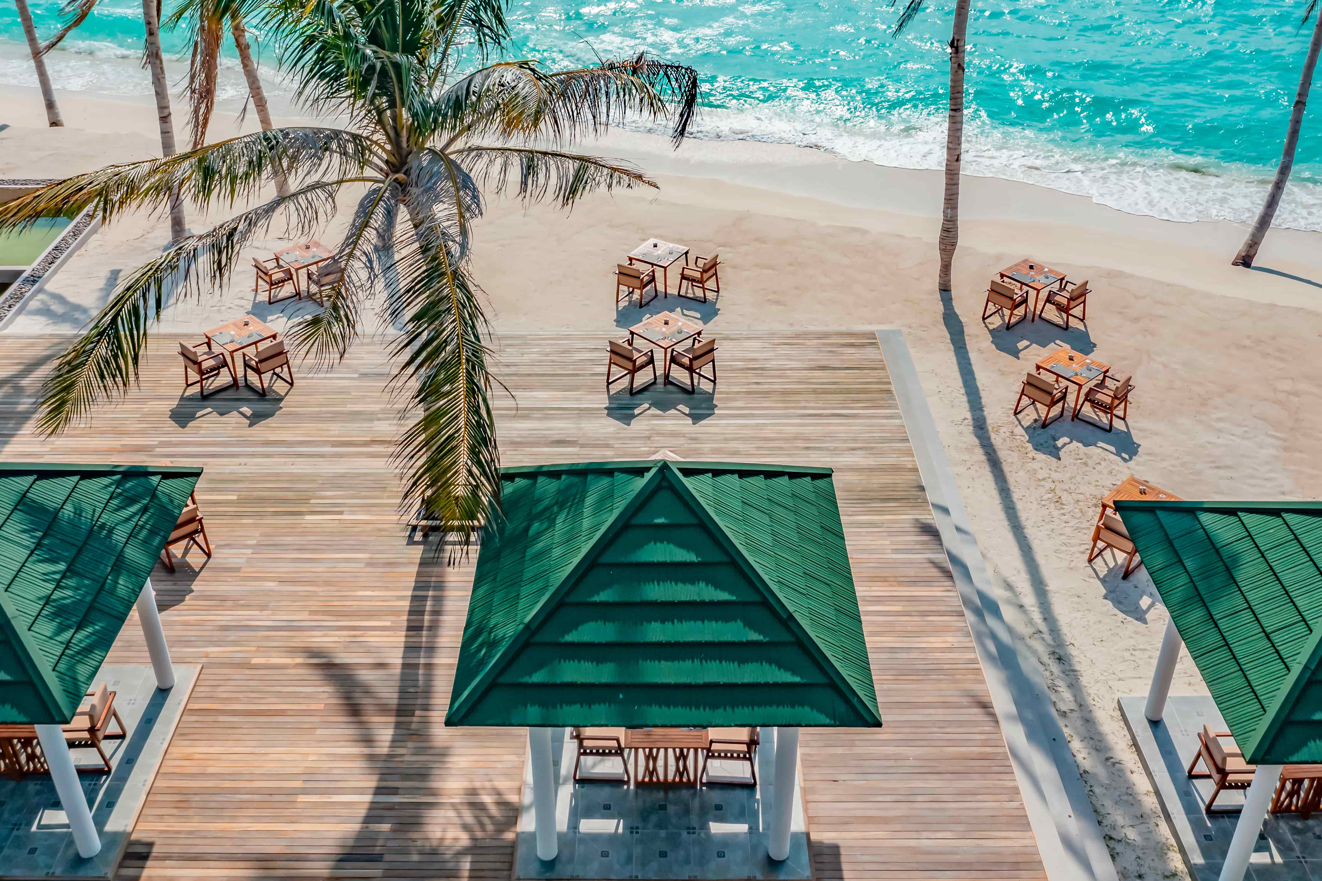 - Beachfront terrace seating