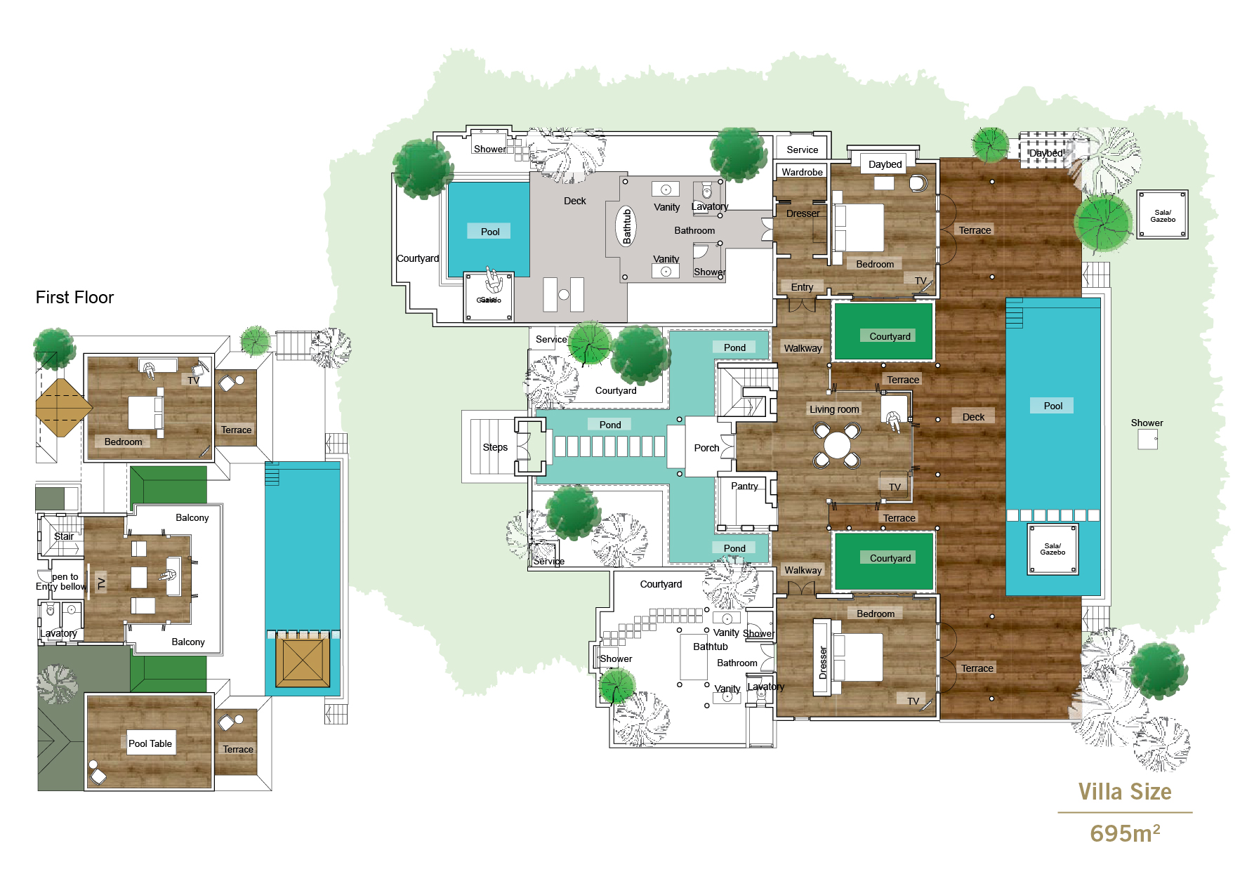 Two storeys. 600 square meters of villa living. Round-the-clock butler service. A big swimming pool. An outdoor dining pavilion. And yes, there’s even a private spa space if you’re feeling too lazy to go to our spa. Did we mention you have your very own private slice of beach? The master bedroom has its own private pool too. The Celebrity Retreat is the crown jewel that sleeps up to 10 guests, making it the right choice for friends travelling together or all generations of a family.