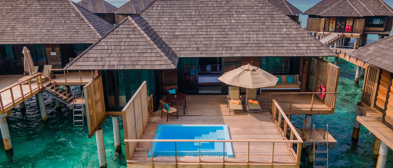 Similar to our Water Villas in style, with major difference outdoor: the private pool and the sunken seating. This villa was designed for those who love a dip in the pool as much as a swim in the sea. The spacious living space, which includes a bedroom, living area, and bathroom, comes with gorgeous views.