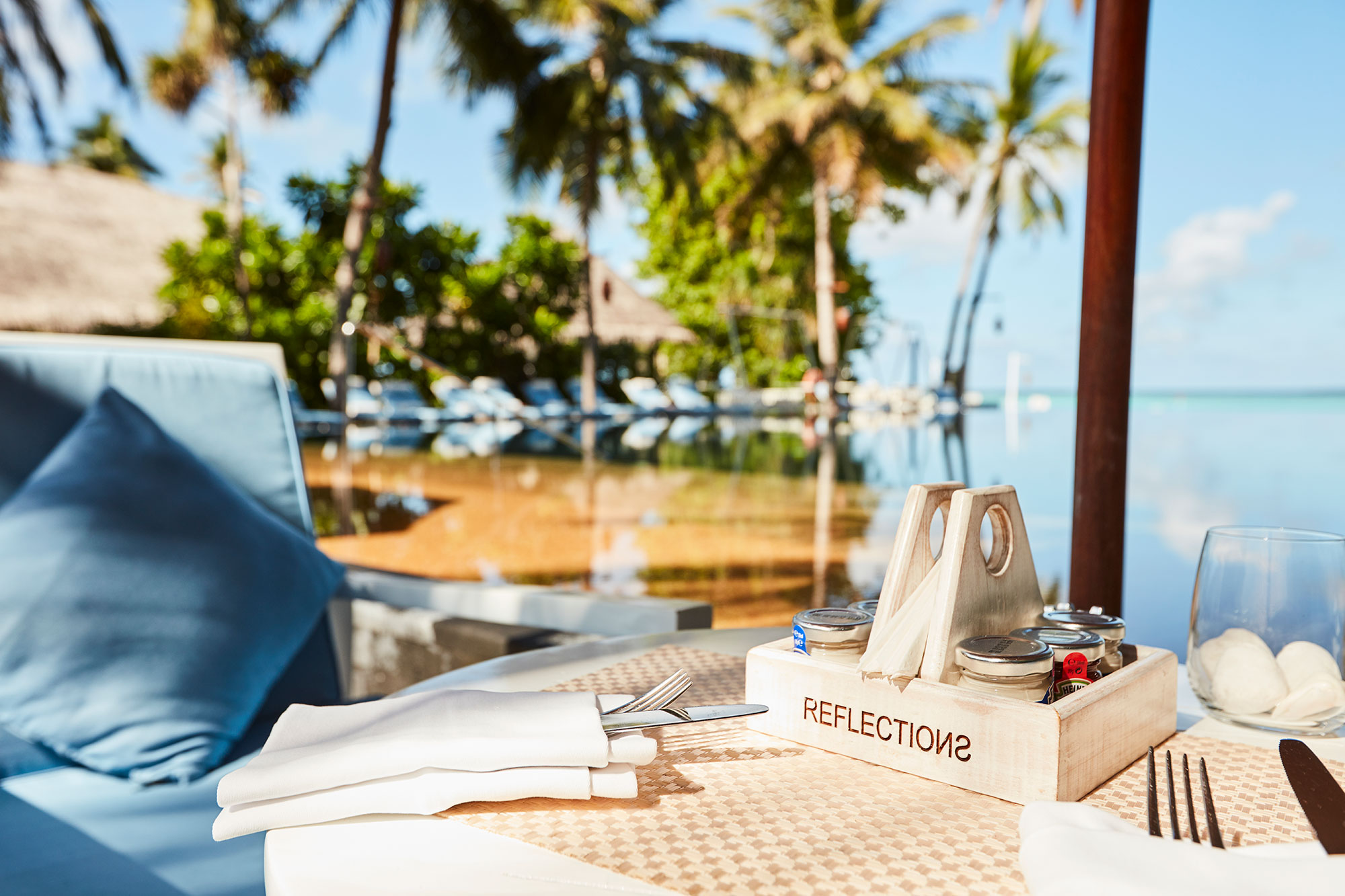 Reflections is an adult-only bar adjacent to the grown-ups only swimming pool. It owes its name to the reflection of the palm trees in the pool below. It’s the ideal spot to laze away. Between a dip in the pool and a siesta on a chaise-longue, grab a bite. The menu offers a mix of healthy small dishes and dishes to share – from ceviche to salt & pepper calamari.