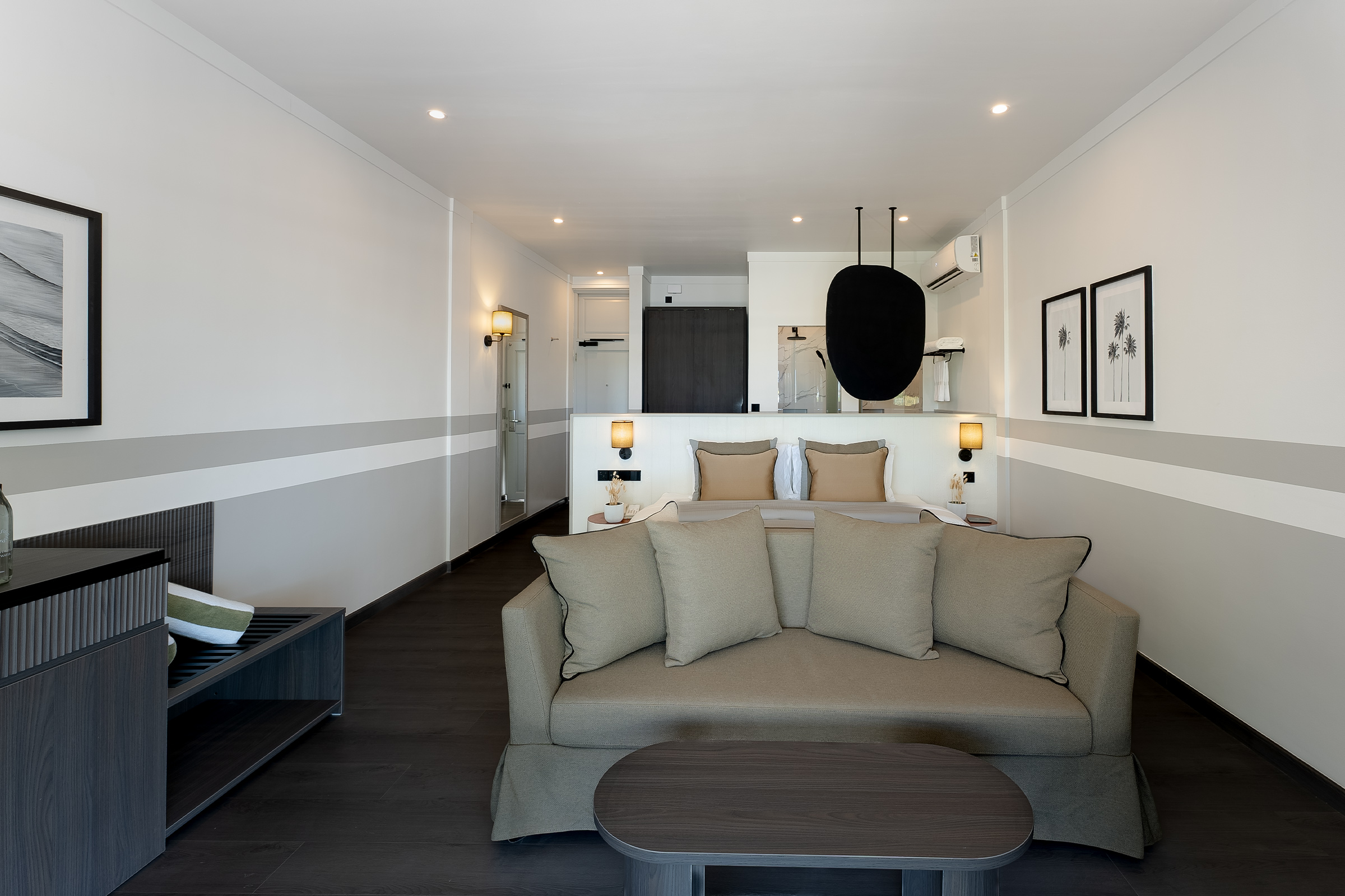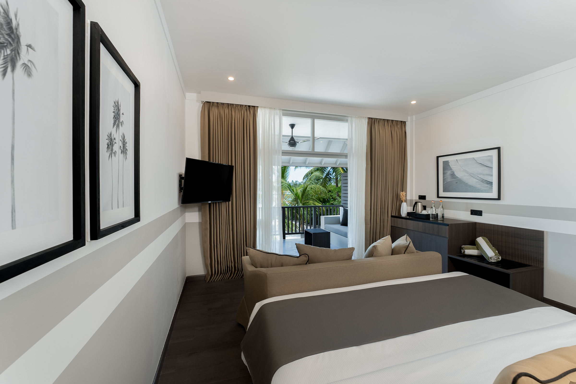 The taupe, black, and grey palette lends tranquility to the interiors. The room, although on the cozier size, is cleverly designed. Terrace or balcony, daybed, couch… It’s all there. Yet you don’t feel cramped. The gorgeous black and white photography on the walls adds to the serene vibe. The pavilions' rooms can be interconnected with rooms with Twin or King-size beds. The Maldives' longest swimming pool at 210 meters with its sunken bar is located right outside the Beach Pavilion room category.