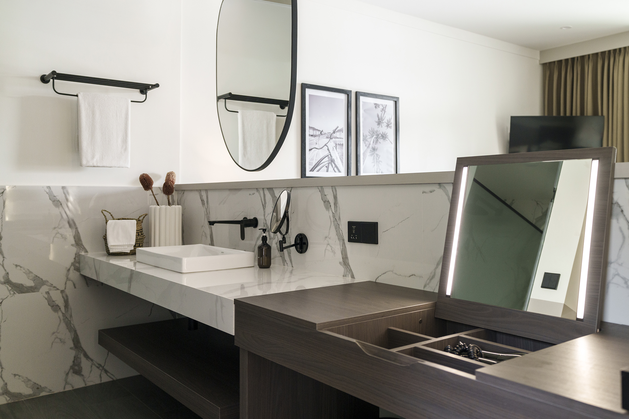 Its location on the western side of the island means one thing only: the best sunsets. The two-storey pavilions' rooms are cleverly designed to be interconnected if need be. The taupe, black, and grey palette lends tranquility to the interiors. Terrace or balcony, daybed, couch… It’s all there. A few steps away is the Maldives' longest swimming pool at 210 meters, which runs parallel to the beach.