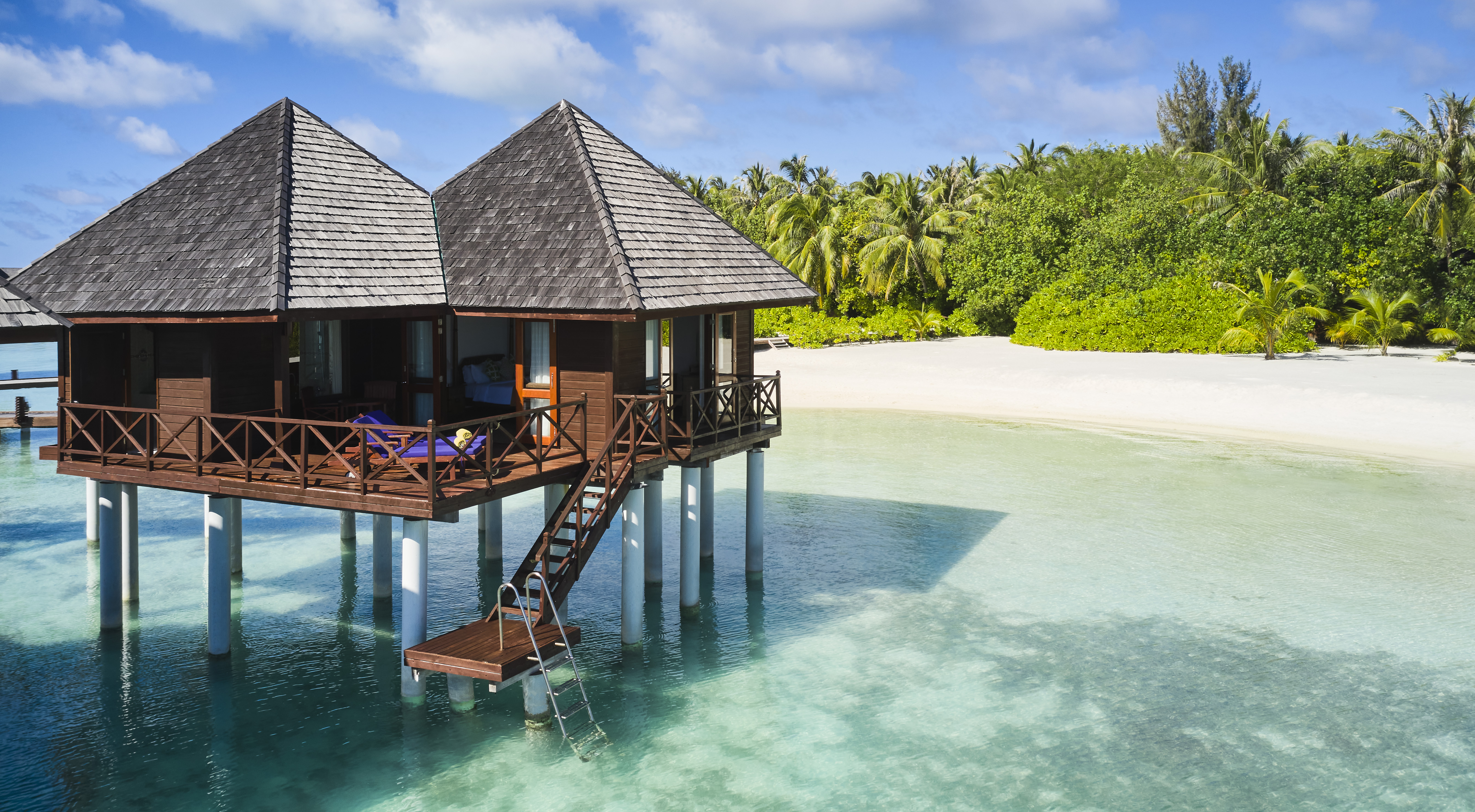 With its shingled roof and dark wood furnishings, this villa exudes a traditional charm. The wooden sundeck is the perfect spot to soak up the sun and take in the views of the various islands that make up the Olhuveli compound. Our standard overwater level is the perfect hideaway for two.