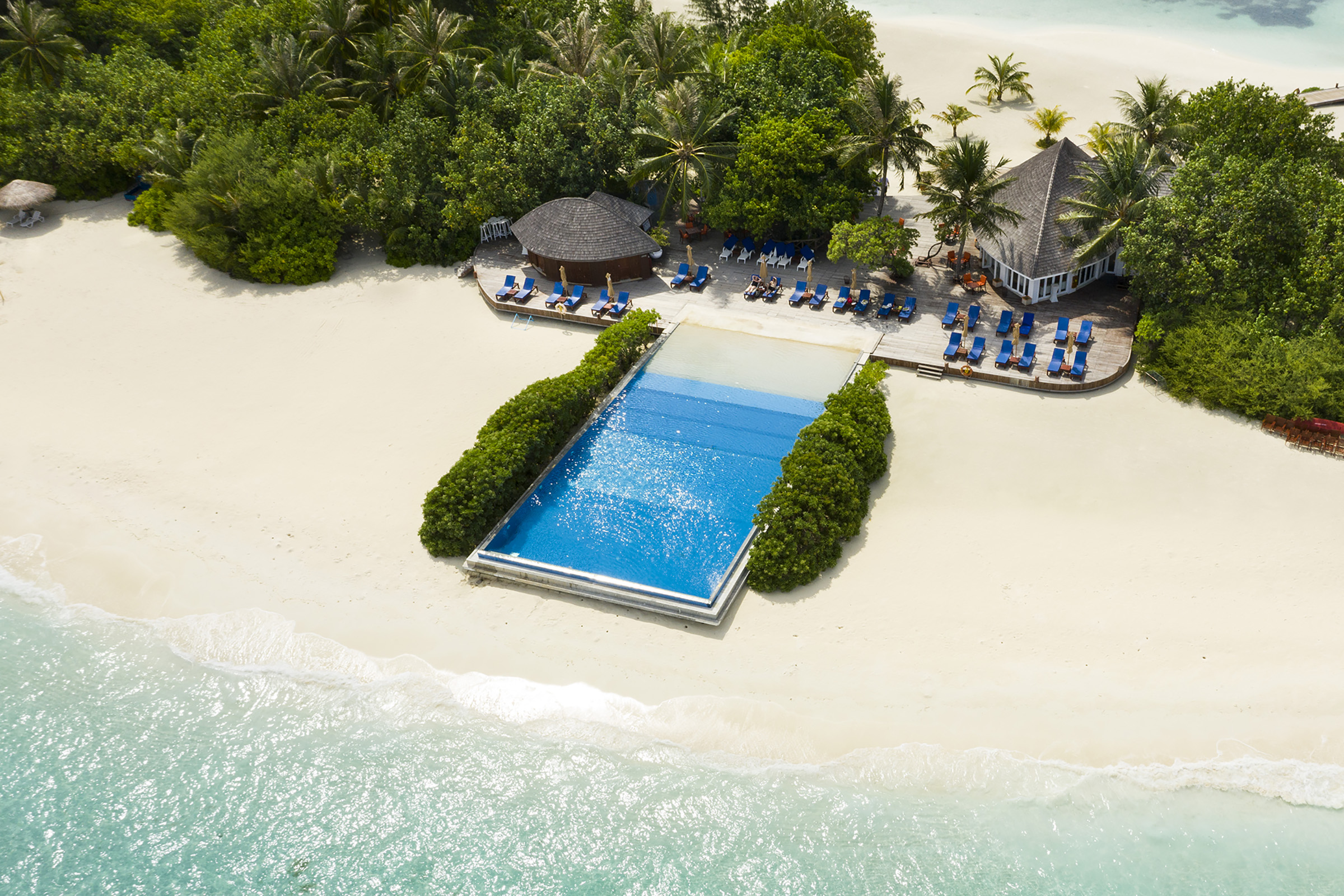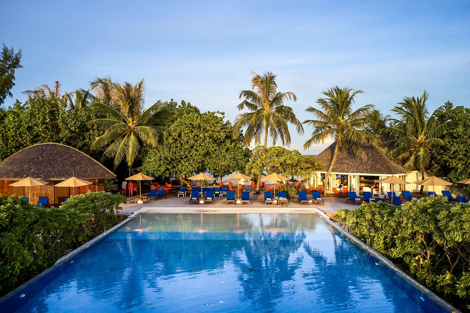 Dhoni bar, named after the traditional wooden Dhoni boat, an iconic part of Maldivian culture, is the best place to watch the sunset. Slide onto a chaise-longue on the expansive deck surrounding the infinity pool and slick back a cocktail while taking in the fabulous views.